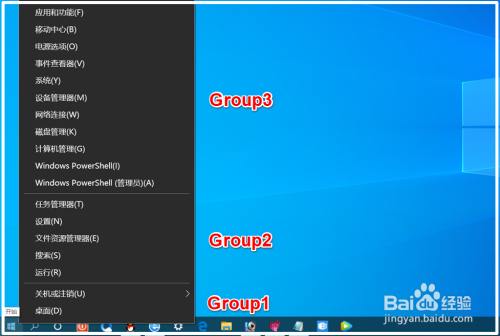 Group1 - 起头右键菜单中的最底层部份(桌面、关机或刊出);