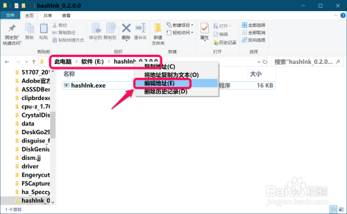 在打开的 hashlnk 窗口中,我们右键点击地址栏 - 编纂地址;
