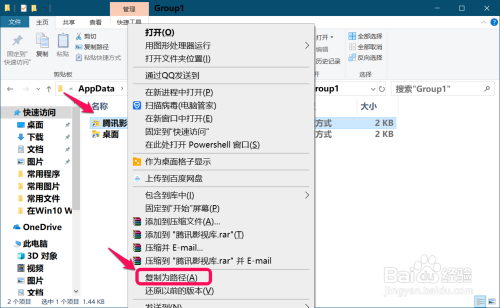 回到Group 1窗口中,按住键盘上的 Shift键,右键点击【腾讯影视库】快捷体例,在右键菜单中点击:复制为路径;