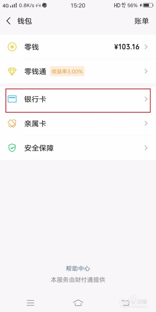 如图,找到本页面上的银行卡并点开。