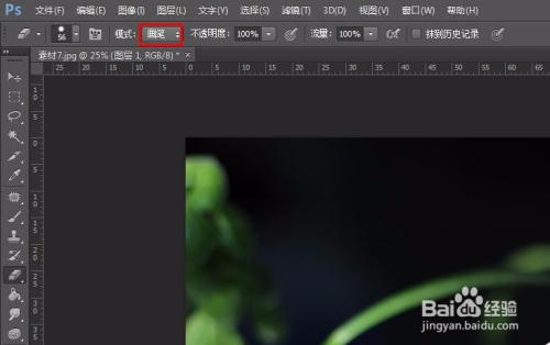 第三步:在左侧东西栏中选择“橡皮擦东西”,模式设置为画笔。