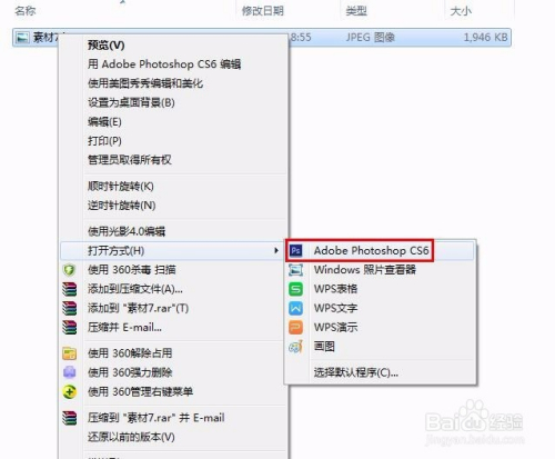 第一步:选中需要做锯齿边的图片,单击鼠标右键,打开体例选择ps。