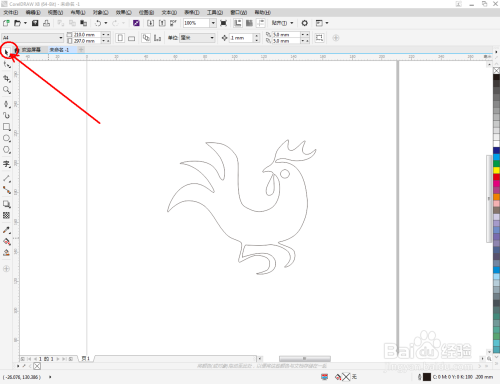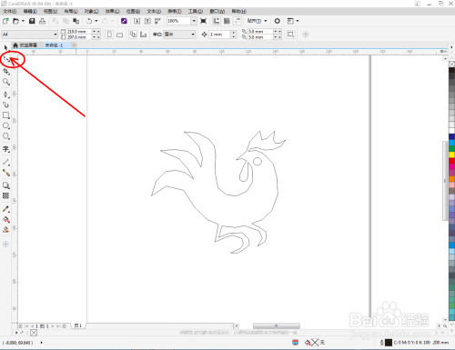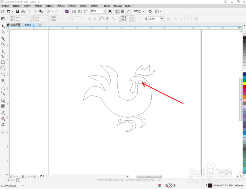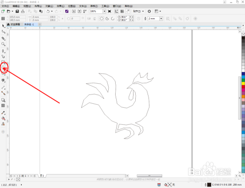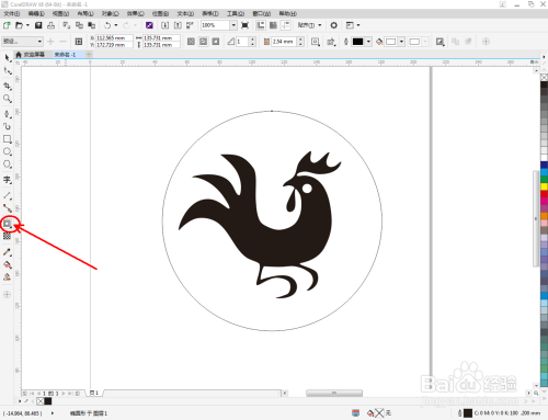 点击【钢笔东西】,在作图区域绘制一个生肖鸡大致轮廓的多边图案。点击【卵形东西】,绘制出一个圆形图案,作为眼睛图案(如图所示);