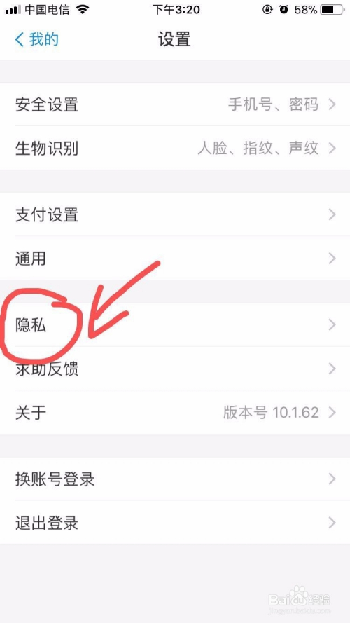 在设置里面找到隐私点击进入下一步;