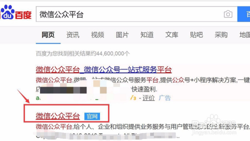 在搜刮成果中选择第二个“微信公家平台”点击进入下一步;
