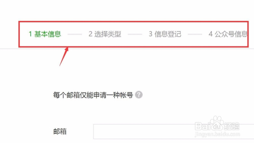 根基流程如下:根基信息—选择类型—信息挂号—公家号信息。