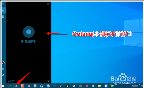 刊出或重启电脑今后,我们可以看到系统桌面使命栏左下角Cotana(小娜)图标已恢复,点击可以打开与Cotana(小娜)对话窗口。