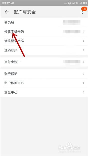 账户与平安中就能看到【点窜手机号码】的功能,点击起头改换。