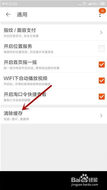 然后可看到右下角的【清理缓存】,点击同样可以清理淘宝的缓存数据。