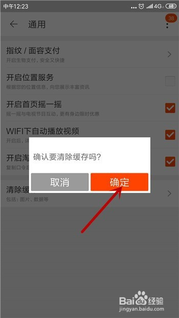 在断根之前会提醒我们是否确认要清晰缓存数据,点击【确认】。