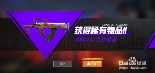 页面中我们能看到良多礼品,此中一条目就是GROZA生命誓言皮肤,点击开启;