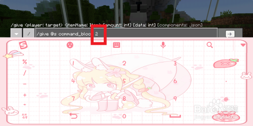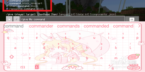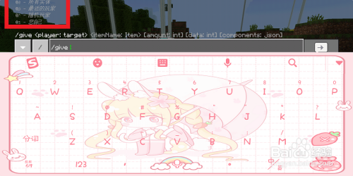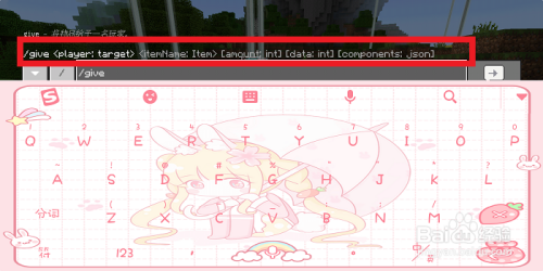 在聊天框中我们输入【/give】,上面就会呈现一个尺度的赐与物品号令的格局。