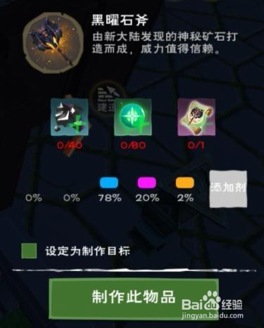 建造:40黑曜石+80魔晶+黑曜石斧图纸