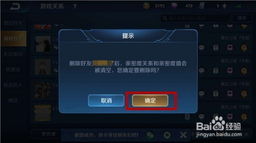 点击之后会提醒我们是否确定删除该老友,点击【确定】选项。