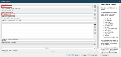 双击栅格投影东西,按照提醒,在第一个红框内填入带有轮回标记的1.tif,第二个红框内填入存储位置%t1%\%Name%p.tif,输出投影坐标系按照需要进行选择