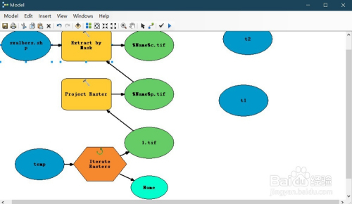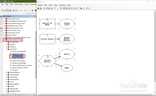 在模子界面中,依次点击lterators、Rasters,一个处置模块就被加载了进来