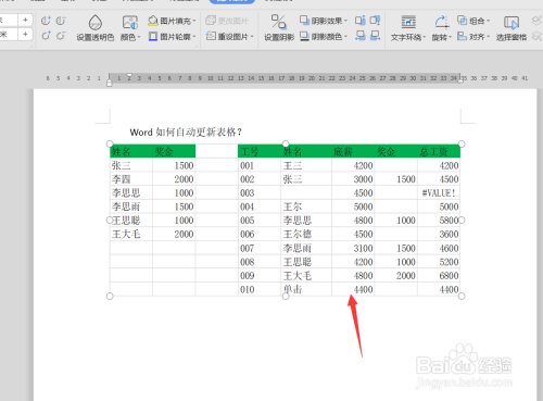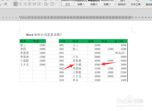 接着我们再回到我们的word表格内容中可以看到,word表格已经随Excel表格主动更新了。