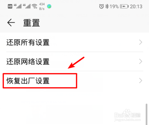 点击后在重置页面中,选择恢复出厂设置的选项。