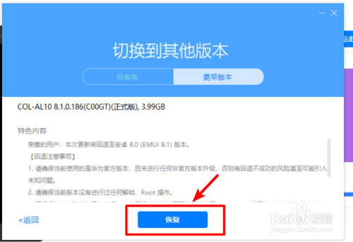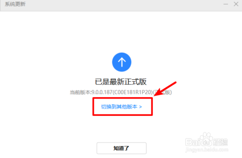 点击后若是系统不是最新版本,可以进行更新为最新版本,同时也可以点击下方的切换到其他版本的选项。