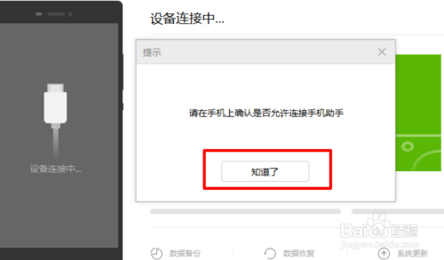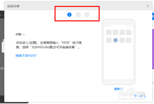打开进入本家儿界面后将手机与电脑进行毗连,按照按照页面中的提醒打开手机中的HDB毗连。