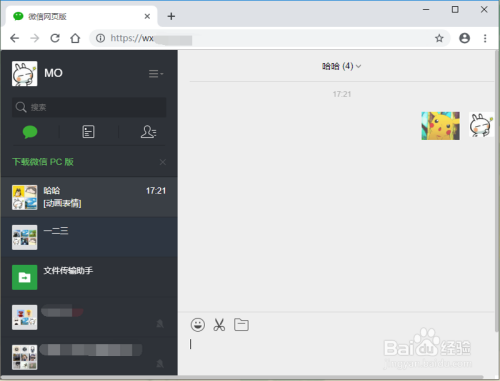 发送当作功后,电脑的微信网页版也会同步显示动态脸色包。