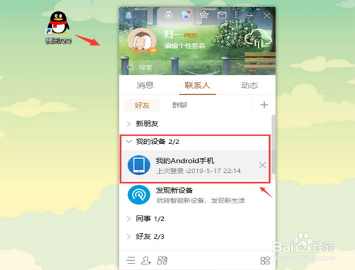 电脑打开QQ,登录QQ,点击【我的设备】,选择本身的手机设备。