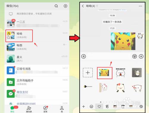 手机打开微信,选择一个聊天页面,发送动态脸色包到聊天页面。