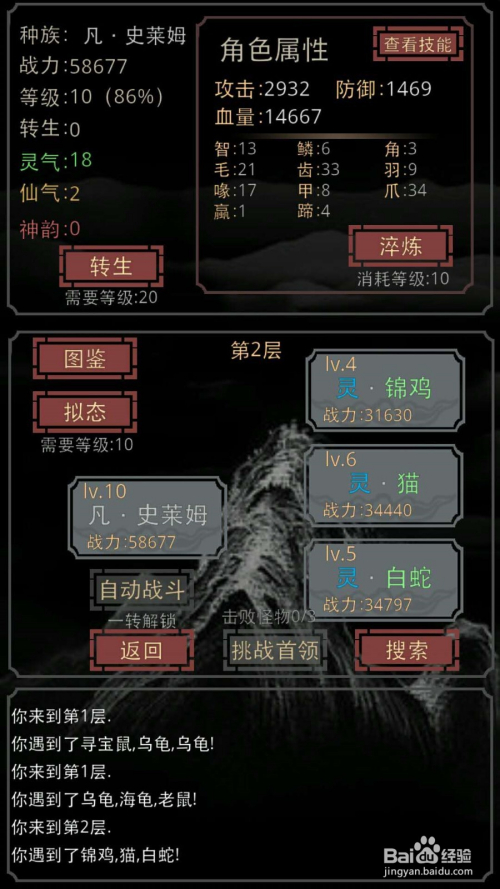 一向进级打怪,小我保举每一层最后领先5个品级,稳中求胜才是王道,若是说你一不小心被打死了