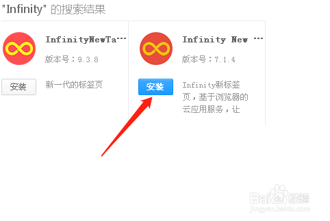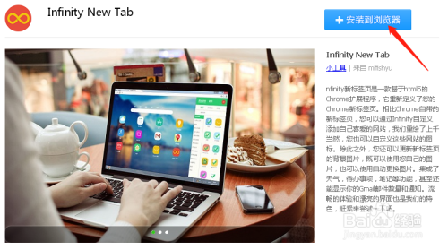 好比我需要安装插件Infinity,这是一个自界说浏览器标签页的插件。可以在搜索框中输入Infinity,获得两个成果。在插件上单击,就能看到该插件的具体介绍。好比我单击Infinity New Tab,就能看到该插件的具体信息。