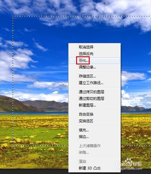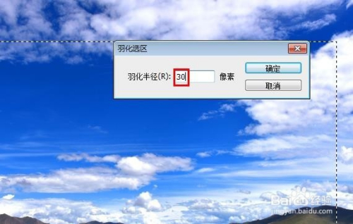 第四步:在选区中单击鼠标右键选择“成仙”,成仙半径设置为30。