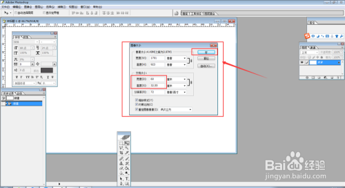 在弹出的对话框中,有像素大小和文档大小,在文档大小中的宽度输入60,则高度默认为32.里面,,点击"好“之后,就设置当作功,如图:
