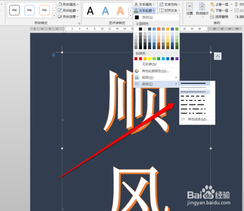点击文字边框轮廓后,我们点击虚线并选择虚线的样式。
