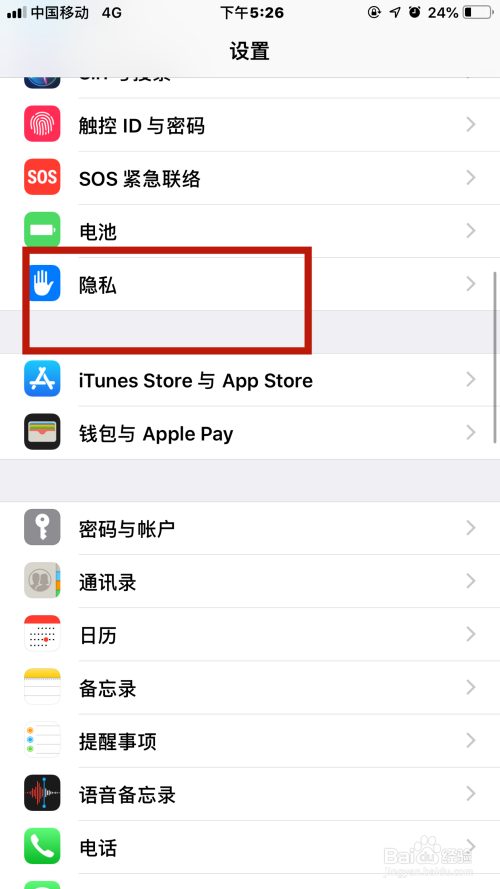 接着回到设置界面,找到【隐私】