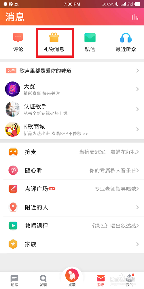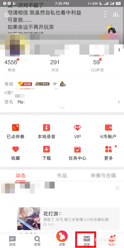 首先,我们在全平易近k歌的本家儿界面中,点击下方的动静选项。