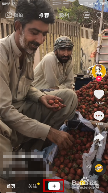 擦拭变美的视频可直接在抖音里拍摄,打开抖音后点击底部的【+】选项。