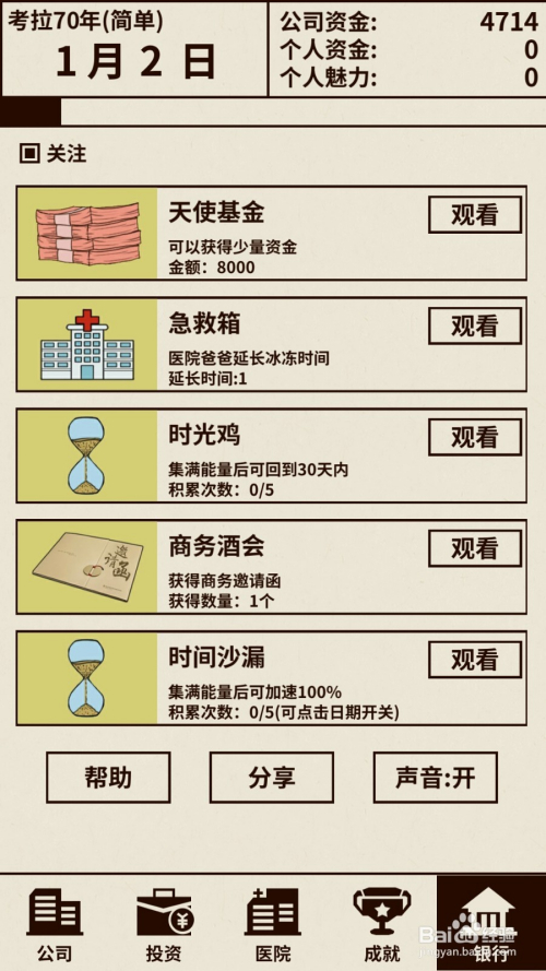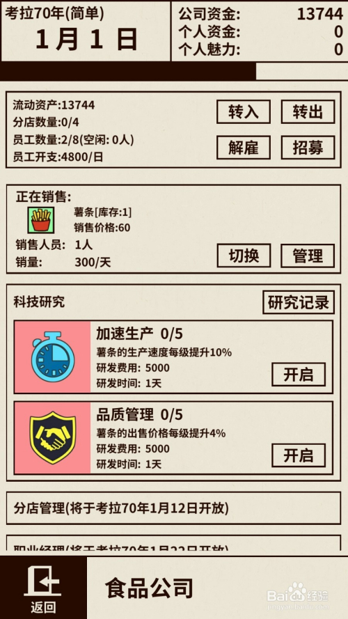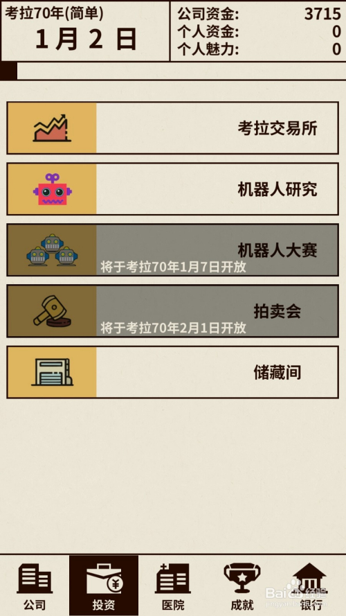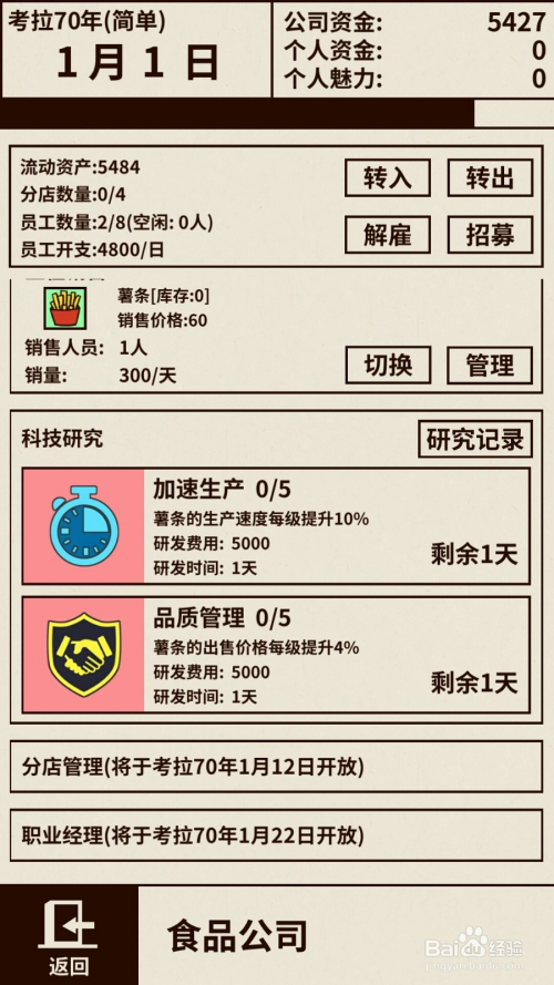 接着我们进入到最主要的位置——赚钱,这里是经营办理的熬炼位置,可以看看你是否有经营脑筋,如何赚更多的钱