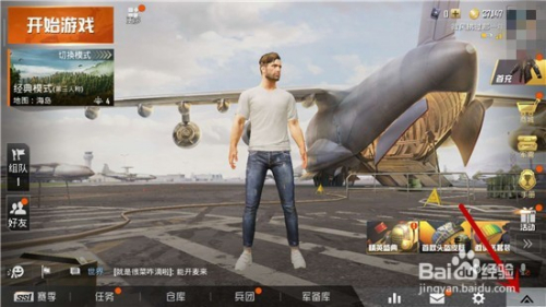 打开和平精英进入游戏,在游戏大厅的左下角找到如图所示的箭头并点击。