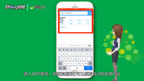 - 1进入APP首页后,在搜索框中可以搜刮本身的化妆产物。
