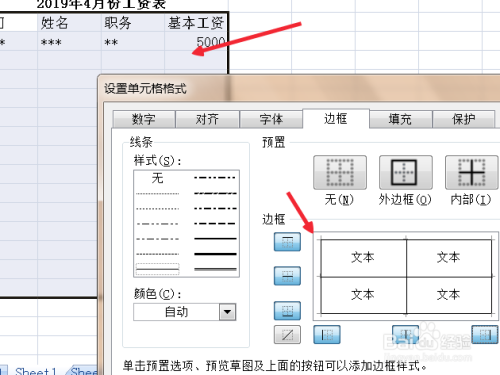 选择除了题目之外的所有单位格,右键设置单位格格局-边框,选上周围和中心的边框,确定,如图。