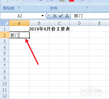 然后我们选择A2单位格,输入相关的二级题目,好比部分,如图。
