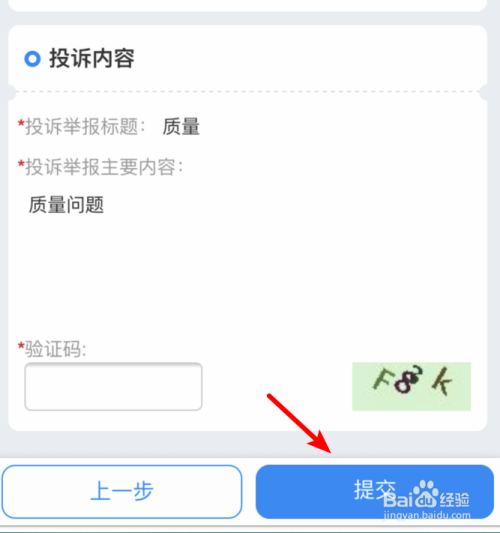 点击后可以看到整个投诉举报的内容信息,核实无误后,输入下方的验证码,点击提交即可提交投诉举报。
