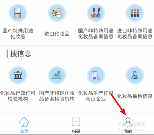 打开手机中的化妆品监管应用,进入后点击下方我的选项。