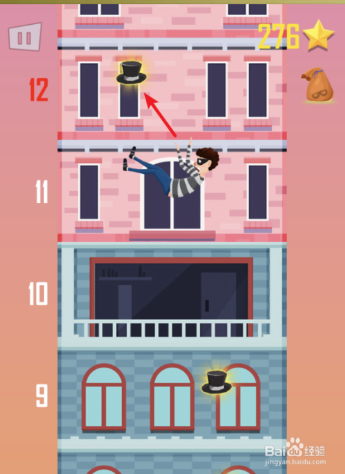 起头游戏后,经由过程点击屏幕将游戏脚色进行抛出,刚起头会抛得比力低,越往后抛的越高。
