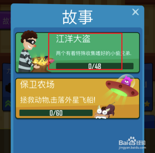 同时,游戏内还有一个比力有意思的故事模式,点击故事模式后,可以看到有两个类型,点击江洋悍贼进入。