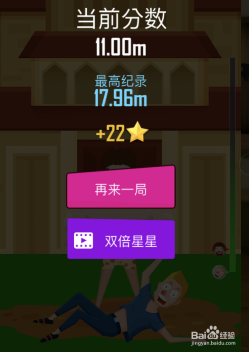 若是在人物下落时,没有接到人物,那么游戏就会主动竣事。竣事后会显示出本身获得分数已经以及获得星星的数目。