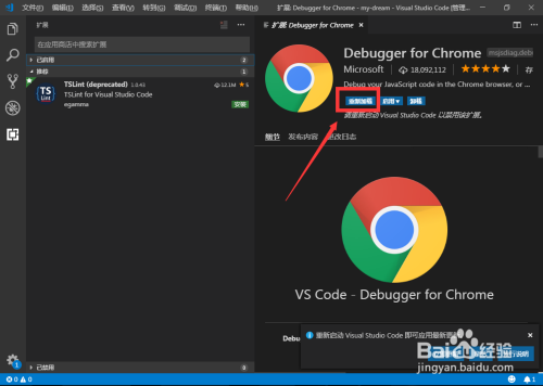 若是不想利用Debugger for Chrome插件,可以点击【禁用】按钮,将该插件禁用;若是Debugger for Chrome插件被禁用了要从头利用的话就点击【启用】,然后从头加载就可以利用了。