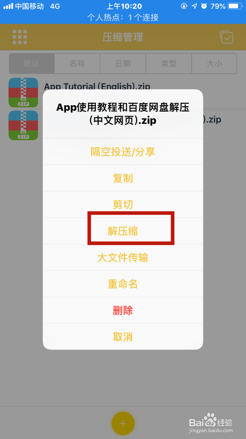 或者也可以直接将要解压的文件标的目的左滑动,点击【解压缩】