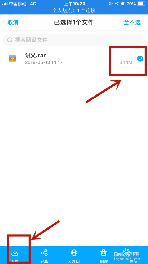 接着在改账号所存放的文件中找到要下载的文件,勾选要下载的文件,点击下方的【下载】