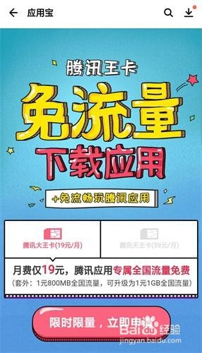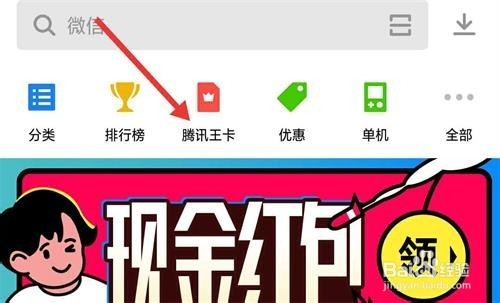 在打开的软件本家儿页面的首行数字中可看到 “腾讯王卡” 字样点击打开