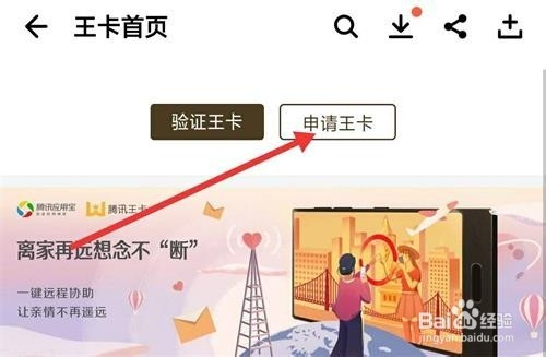在 进入的[王卡首页] 面中,选择 [申请王卡],进入